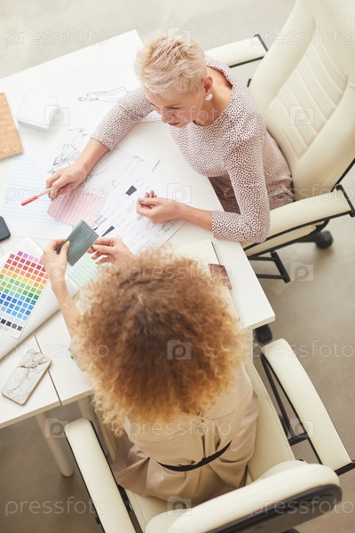 Два модных дизайнера работают вместе Top View