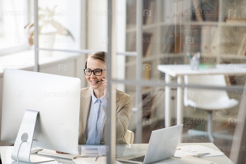Позитивный оператор обслуживания клиентов, отвечающий на вопрос клиента