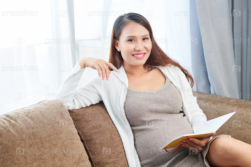 Беременная женщина проверяет дневник благодарности