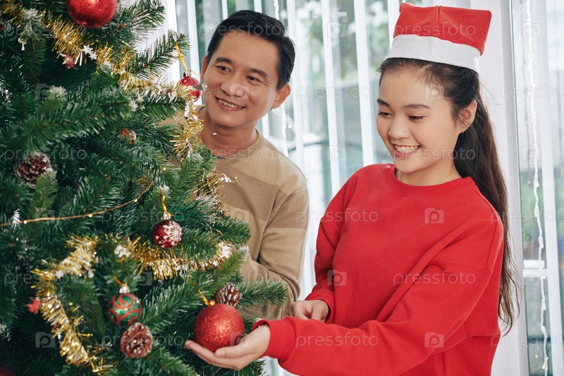 Девушка-подросток украшает дерево