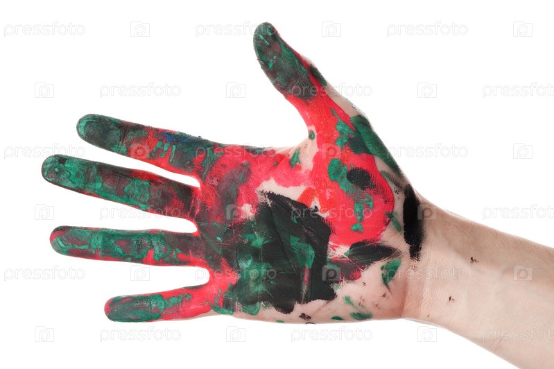 Крупным планом рука, раскрашенная акварелью, изолированная на белом фоне