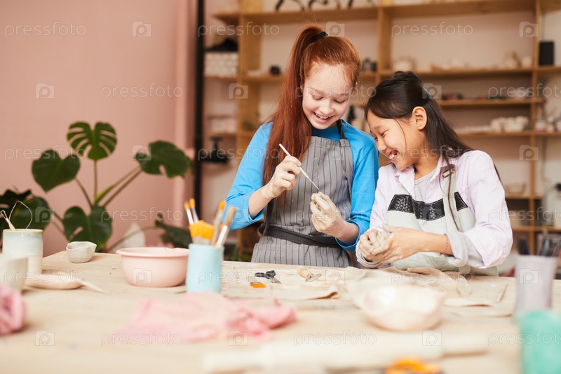 Девочки, наслаждающиеся мастерской керамики