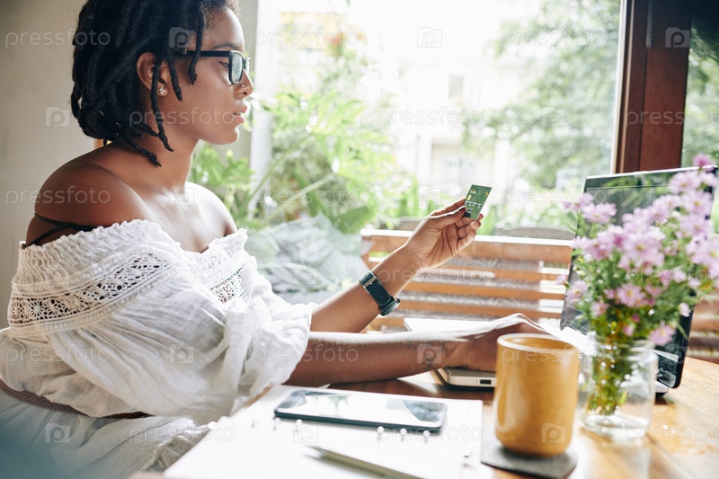 Женщина платит онлайн на ноутбуке