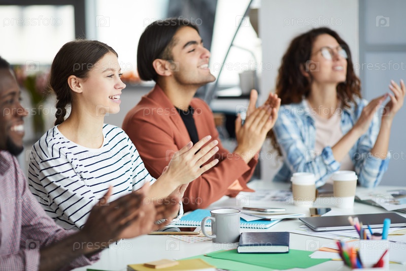 Ряд молодых бизнесменов, аплодирующих