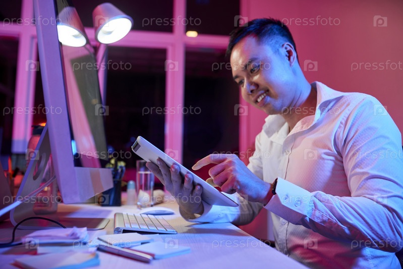 Бизнесмен, работающий на планшетном компьютере в офисе