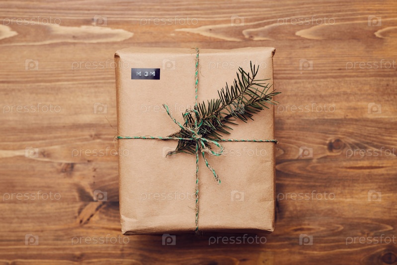 Подарочная коробка с украшенной ветвью пихты