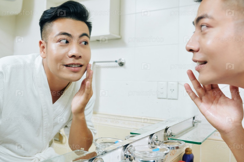 Вьетнамский мужчина наносит увлажняющий лосьон