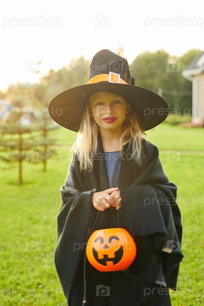 Little Witch Holding Trick or Treat Bucket (Маленькая ведьма, держащая ведро с хитростью или угощениями)