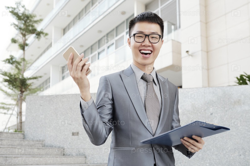 Взволнованный молодой бизнесмен