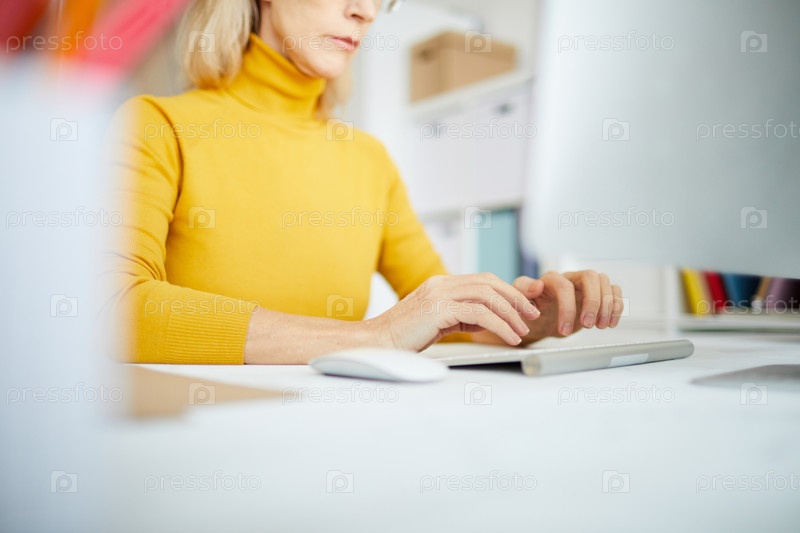 Ключевое изображение деловой женщины, печатающей на клавиатуре