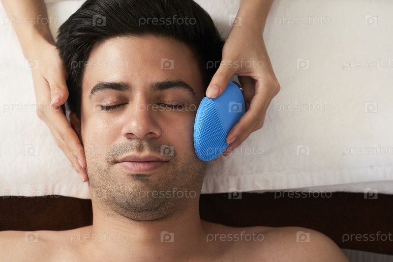 Мужчина, получающий массаж лица