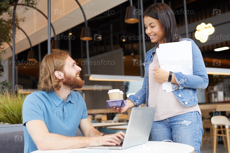 Молодая пара делает перерыв на кофе в кафе