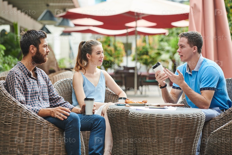 Бизнесмен рассказывает коллеге о своих идеях в кафе