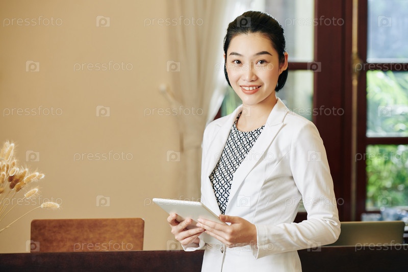 Рецепционера с цифровым планшетом