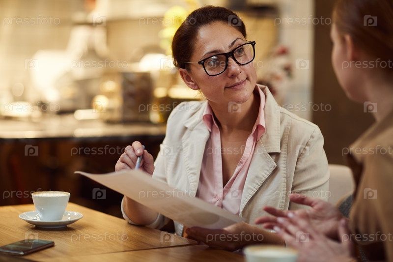 Женщины обсуждают контракт на встрече