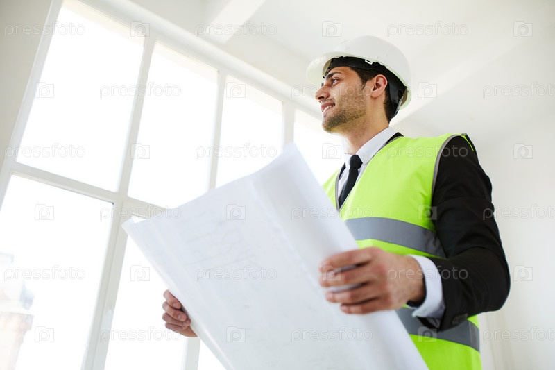 Улыбающийся инженер Holding Plans