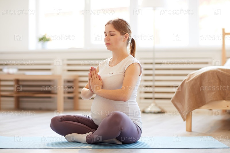 Беременная женщина, медитирующая