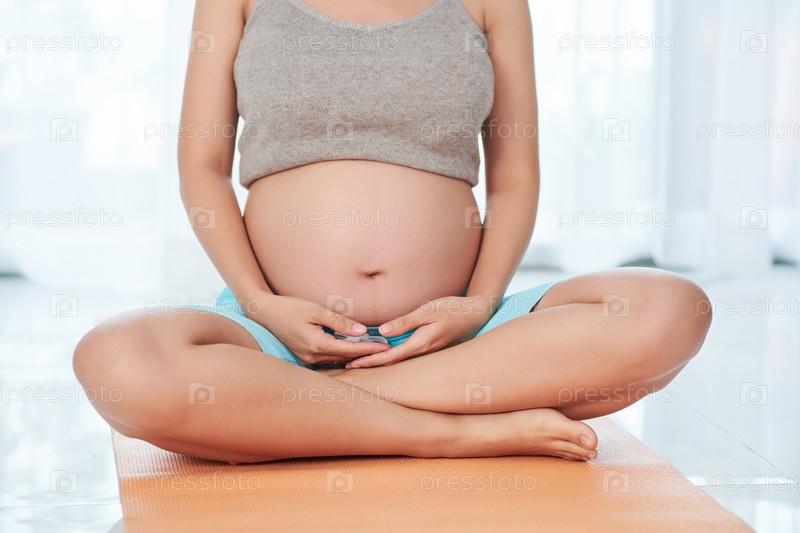 Беременная женщина на занятиях йогой