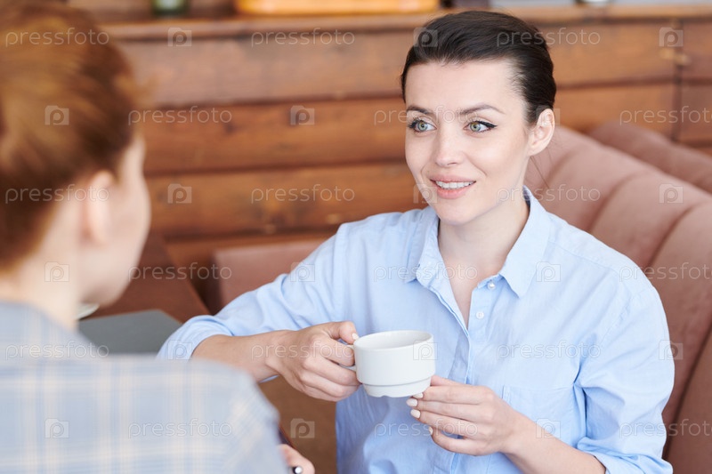 Красивая женщина проводит время с другом в кафе