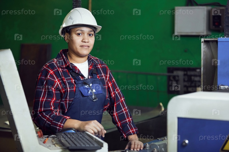 Портрет женщины-работницы на зеленом
