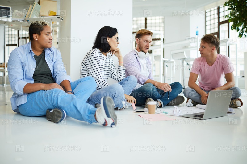 Молодые коллеги работают над творческим проектом вместе