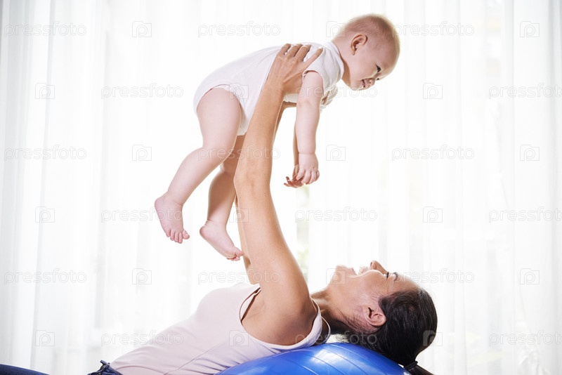 Мать поднимает своего ребенка