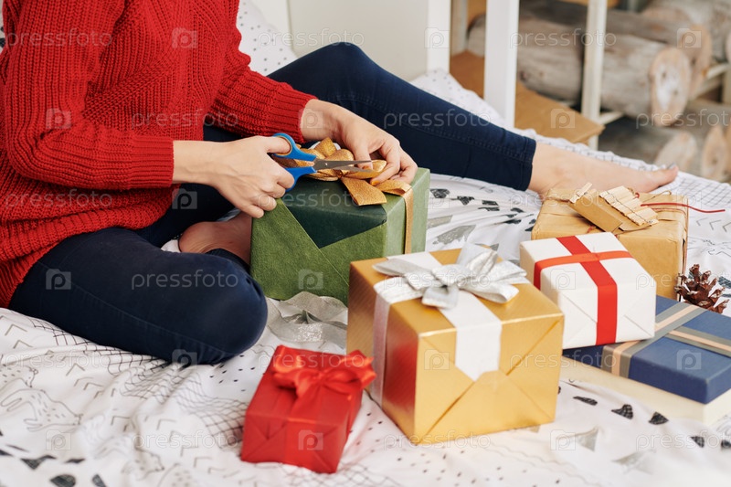 Женщина, упаковывающая подарки