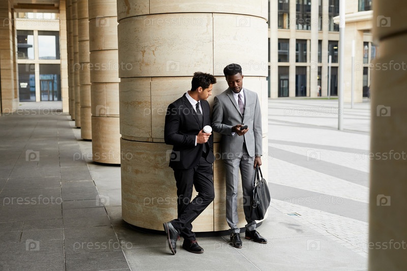 Бизнесмены, использующие мобильные телефоны на открытом воздухе