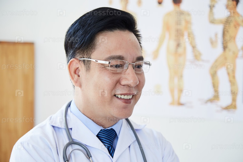 Азиатский улыбающийся зрелый врач