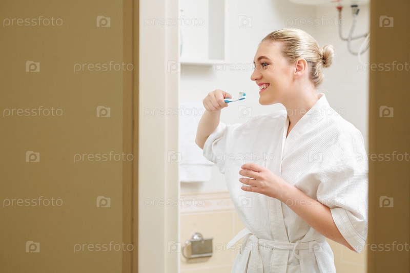 Счастливая женщина чистит зубы