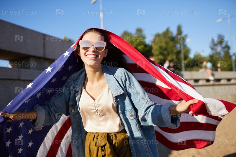 Экстатическая женщина развлекается в День независимости