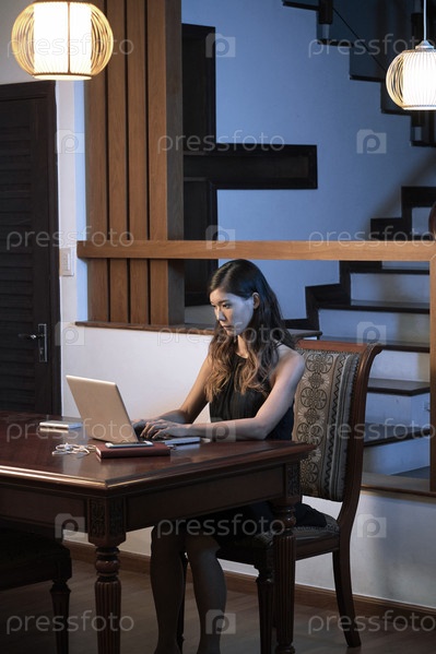 Женщина, работающая на ноутбуке