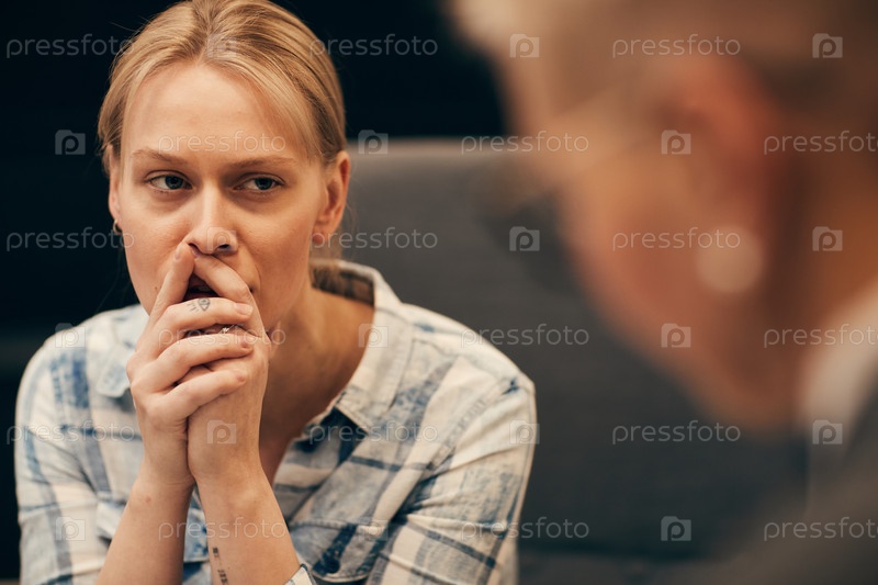 Расстроенная женщина в кабинете психолога