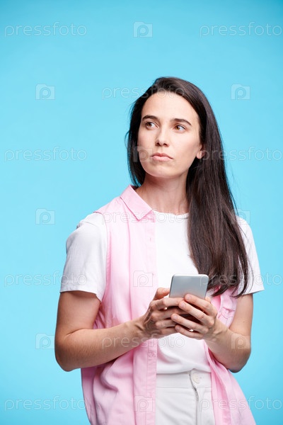 Молодая серьезная брюнетка в повседневной одежде