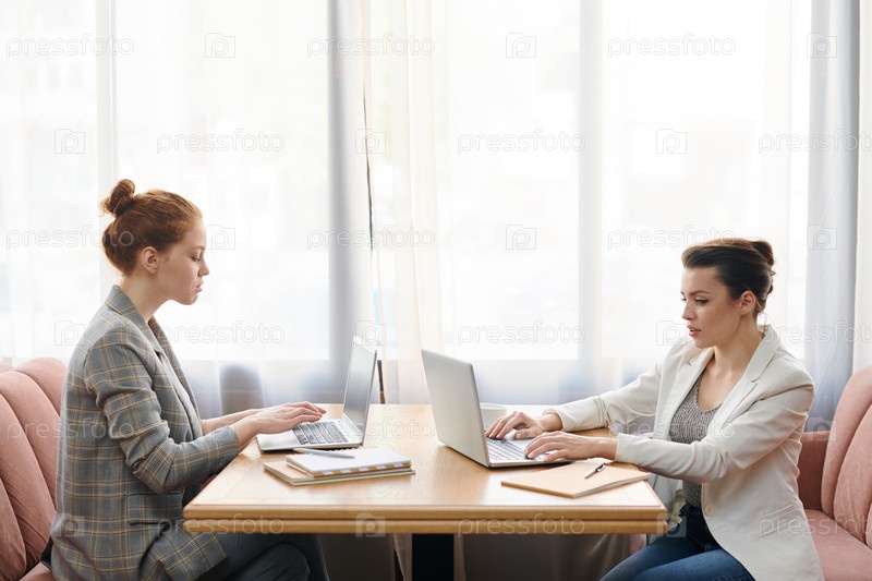 Современные бизнес-леди работают в кафе