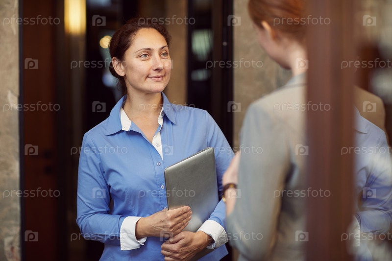 Деловая женщина разговаривает с работником