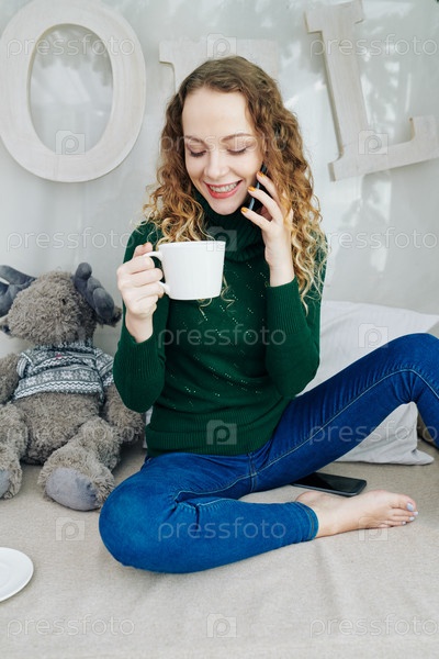 Красивая молодая женщина, разговаривающая по телефону