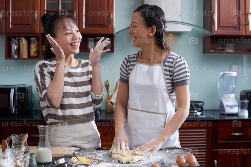 Мать и дочь наслаждаются приготовлением пищи