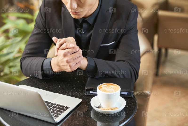Бизнесмен пьет кофе и читает новости