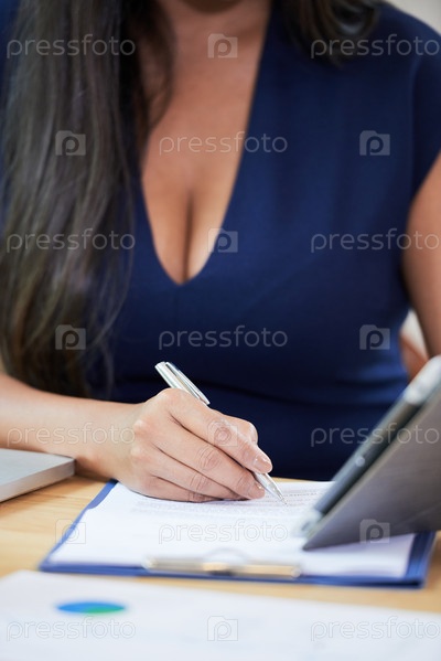 Деловая женщина смотрит презентацию