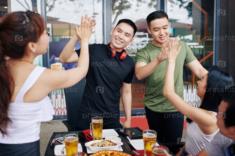 Друзья развлекаются во время встречи