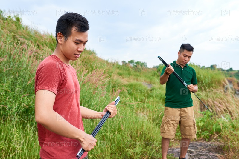 Друзья устанавливают палатки вместе