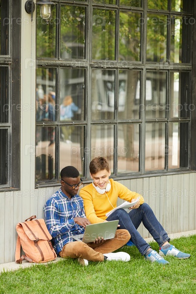 Два студента делают домашнее задание в кампусе