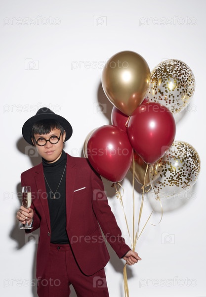 Молодой азиатский мужчина держит воздушные шары на вечеринке