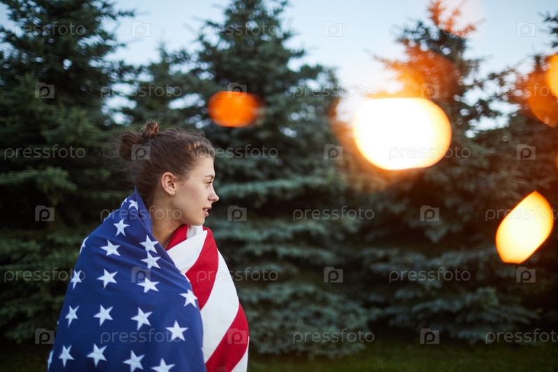 Девушка гуляет по лесу во время Дня независимости США