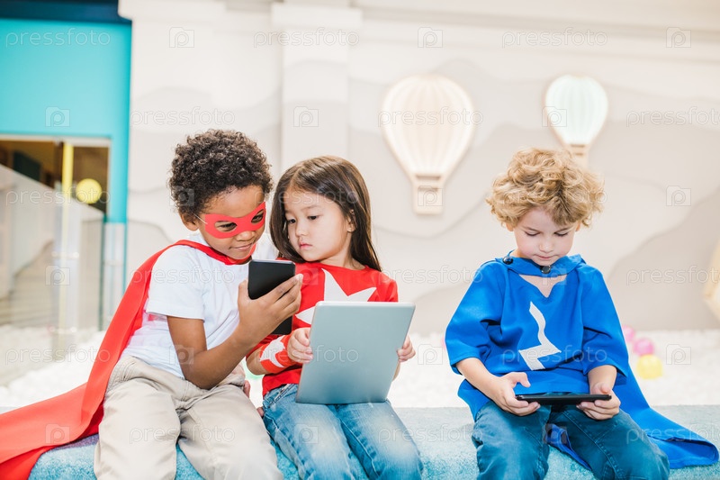 Милый африканский мальчик показывает любопытное видео на смартфоне маленькой азиатской девочке