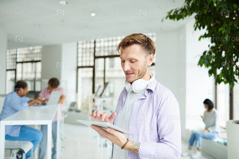 Контент-парень, общающийся онлайн в совместном рабочем пространстве