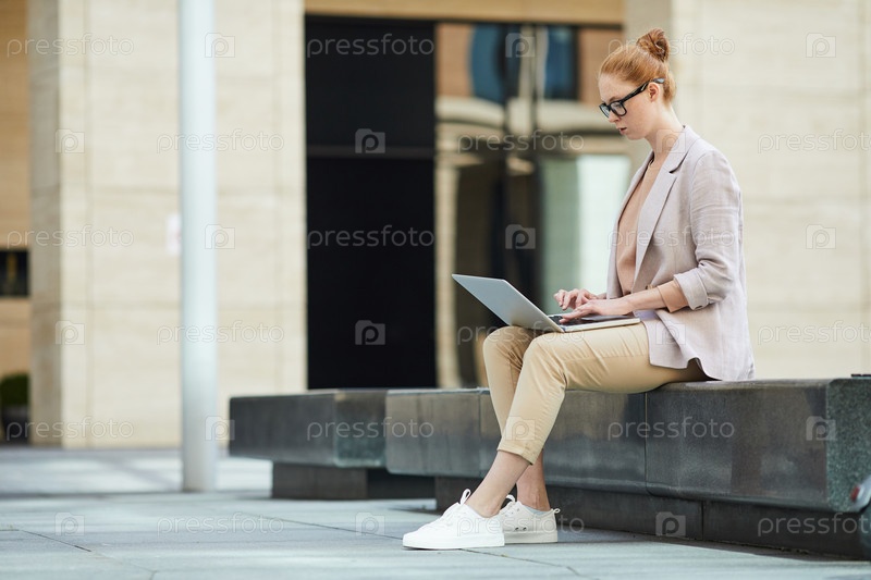 Деловая женщина, работающая на открытом воздухе