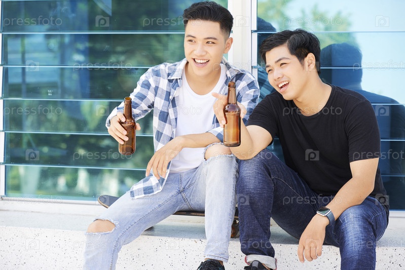 Азиатские мужчины пьют пиво