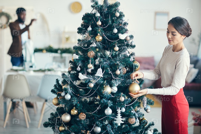 Пара, украшающая дом на Рождество